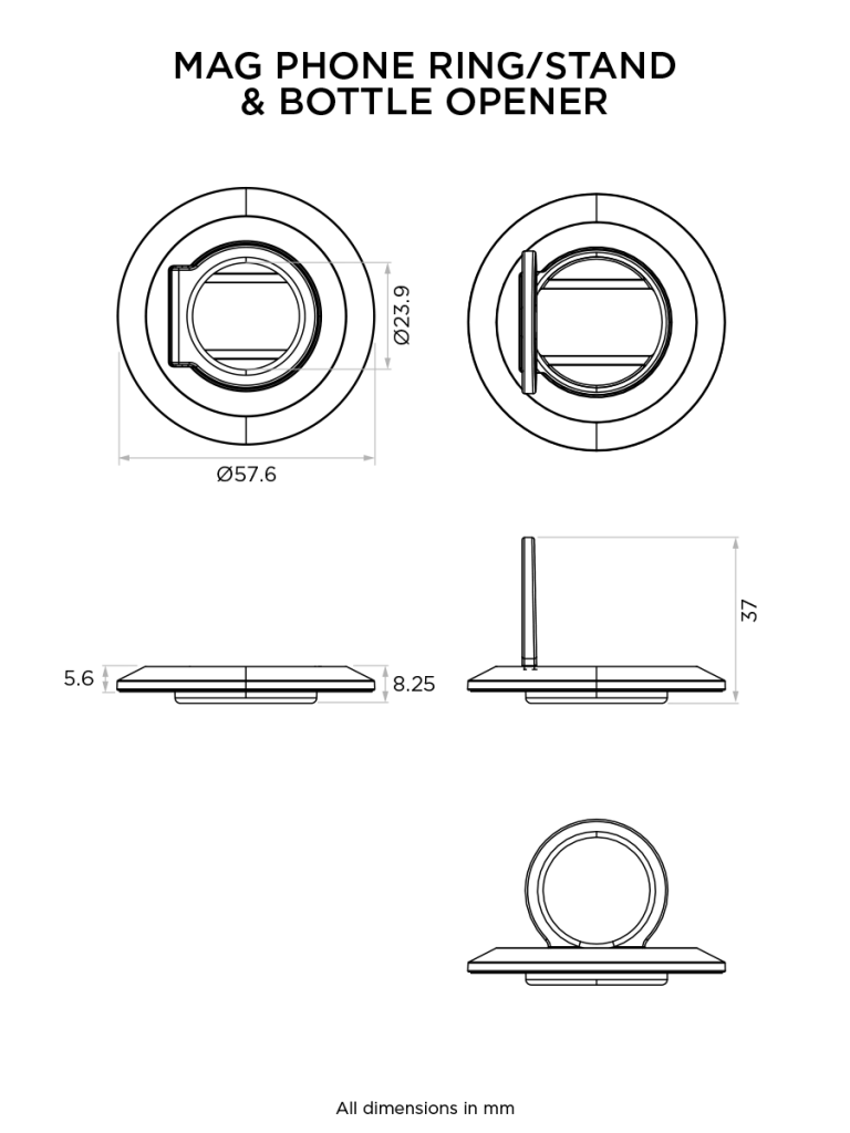 Магнитное кольцо для переноски / подставка / открывалка Quad Lock MAG Phone Ring/Stand and Bottle Op