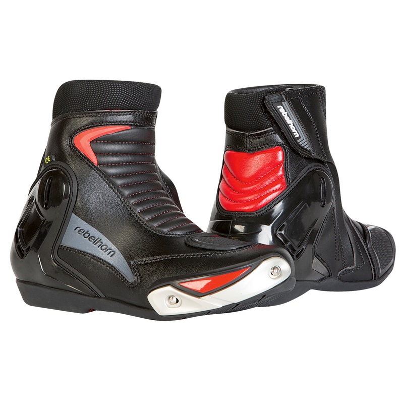 Кроме того, большинство моделей изготовители оснащают незаметной для глаза ударопрочной пластиной для защиты пальцев ноги при ударе и пластиковой накладкой для пятки. Удлинённое голенище ботинка оберегает голень райдера от прямого контакта с горячими трубами выхлопа, ссадин и ожогов. Для подгона под обхват ноги предусмотрены липучки, пряжки или ремешки.