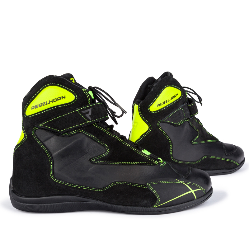 Rebelhorn Spark-это мотоботы на шнуровке со спортивным характером. Они оснащены системой для быстрой шнуровки и снятия обуви. Эластопановый протектор лодыжки обеспечивает комфорт при езде и комфорт при ходьбе и защищает ногу в случае опасности.