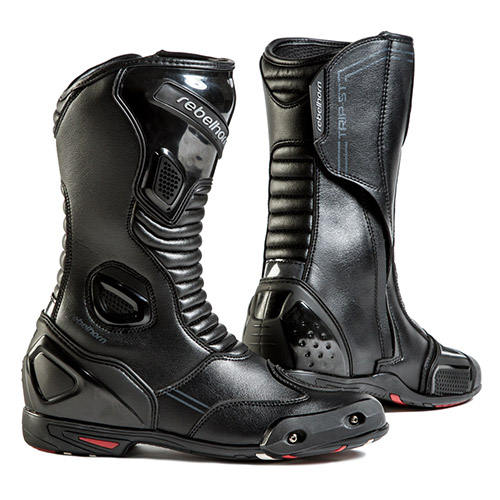 Кроме того, большинство моделей изготовители оснащают незаметной для глаза ударопрочной пластиной для защиты пальцев ноги при ударе и пластиковой накладкой для пятки. Удлинённое голенище ботинка оберегает голень райдера от прямого контакта с горячими трубами выхлопа, ссадин и ожогов. Для подгона под обхват ноги предусмотрены липучки, пряжки или ремешки.
