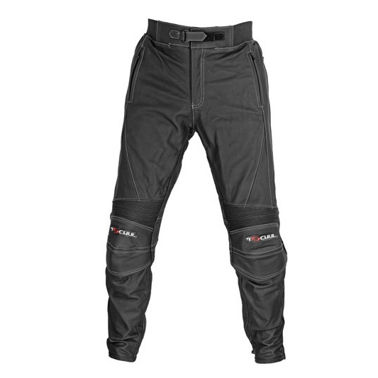 Популярным и незаменимым элементом экипировки у мотоциклистов являются кожаные мотоштаны, внешне они могут напоминать обычные мужские брюки. Экипировку шьют из самых прочных, износостойких и комфортных материалов, а главным отличием мотоэкипировки является специальная защита.