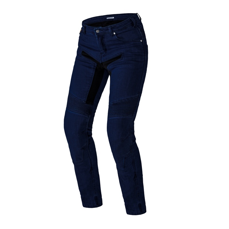 Обтягивающие мотоциклетные джинсы, оснащённые сертифицированными CE протекторами коленей и бёдер, большими панелями Dupont ™ Kevlar® и c возможностью регулировки положения протекторов коленей.Материалы: